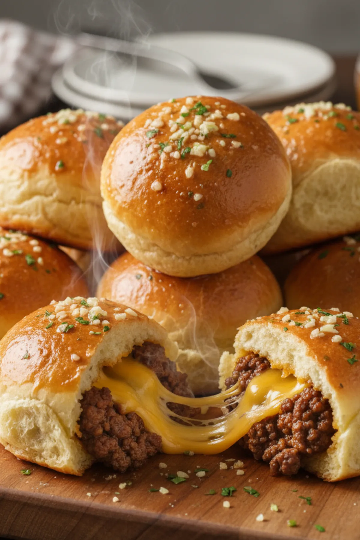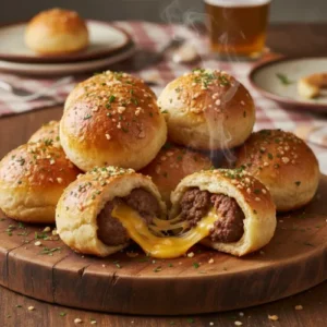 These Garlic Parmesan cheeseburger bombs are not just dinner; they are little pockets of joy. Imagine biting into a fluffy, golden biscuit shell. Suddenly, you hit a savory center of seasoned beef and a molten core of cheese. Then, you get that finishing kick of garlic butter on top. It’s messy, it’s delicious, and it’s exactly what you need.