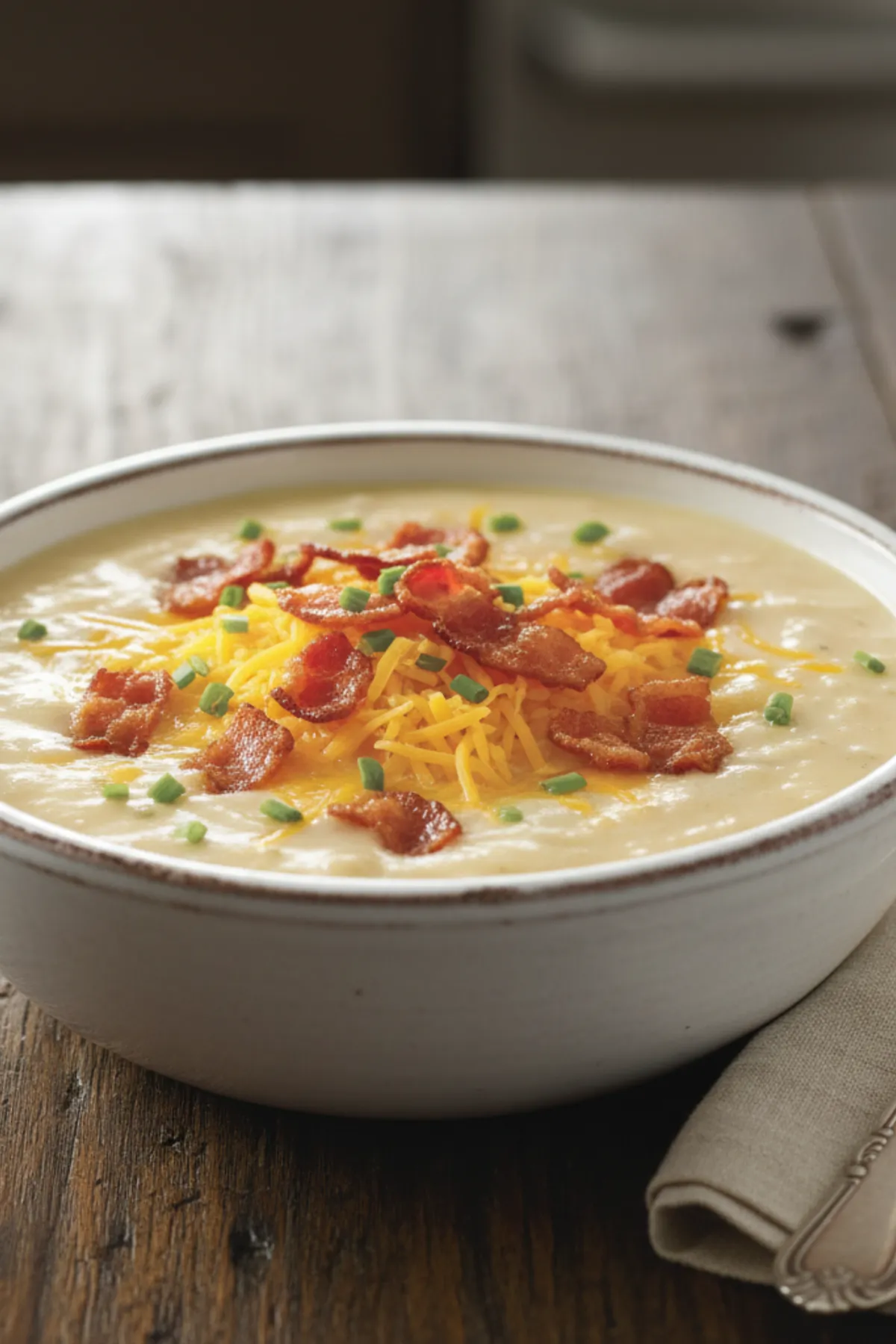 - Serve: Ladle the soup into bowls. Top generously with the reserved crispy bacon, the remaining 1/2 cup of shredded cheese, and a sprinkle of fresh chives.