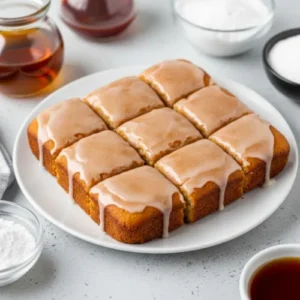 Soft Baked Maple Donut Bars are fluffy baked treats with a sweet maple glaze on top. They taste like donuts but are easier because they are baked in the oven. The texture is soft and perfect for breakfast or dessert. Follow the recipe card below for simple and easy steps.