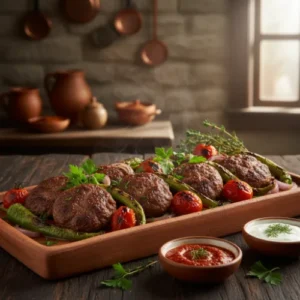 Sizzling Turkish kofte (meatballs) are seared and then baked in a rustic clay dish with tomatoes and peppers, all smothered in gooey, melted cheese. The ultimate one-pan comfort food.